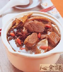 3.将作法1的鸭肉块放入作法2的药汤中,开小火煮约1小时后熄火,最后再放入鸡精粉调味即可。