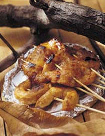 (3)将烤肉架放在火上,甜不辣串分别先涂上一次调味料a,再放在烤架以中高火温度来烤,并须注意翻动,预防烤焦,等两面都烤入味后,再刷第2次的调味料a,烤至两面微干即可,甜辣酱亦可直接刷在甜不辣串上或者待食用前再沾皆可。
