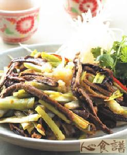 1.鳝鱼放入沸水中煮熟,捞出放凉后撕成片小段备用。