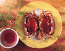 (3)食用前将红蟳沾上樱桃醋汁,味道很特殊,有樱桃的香醇,有别于一般蒜泥或姜汁醋的口味,非常爽口。