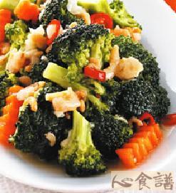 1.绿花椰菜洗净,切小朵,放入沸水中汆烫至熟,捞起沥干备用。