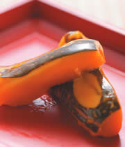 1.将煮汁的所有材料混和,一起以小火煮至滚开,待砂糖完全溶解后熄火备用。