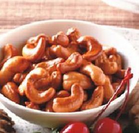 1.所有调味料混合后煮至沸腾,将洗静的腰果放入,转小火煮约15分钟后,捞起沥干。