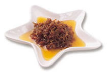 (3)起油锅,用少许油将干贝丝炒至金黄色,再放入虾米拌炒。