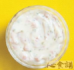 巴西里末1大匙,沙拉酱3大匙,鲜奶油1大匙,白胡椒粒1小匙,砂糖1/2大匙