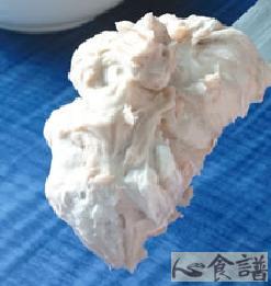 3.将动物性鲜奶油打发成6分发的状态后,加入作法2的面煳中再次拌匀即成克宁姆馅。