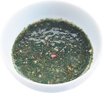 a:红辣椒1根,红蒜头2颗,蒜头2颗,香菜根1根,香茅1根,薄荷叶15公克,柠檬叶10片