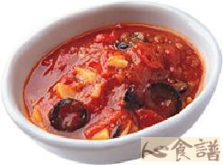橄榄油6汤匙,水200cc,鳀鱼50公克,去皮番茄300公克,番茄煳2汤匙,洋葱1/2颗,蒜头3颗,黑橄榄2汤匙,干辣椒片1茶匙,盐适量