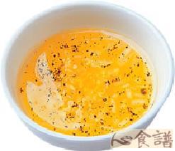 1.法式芥末酱、蛋、糖、盐、黑胡椒粗粉拌匀,分次倒入橄榄油,搅拌成美乃滋般的浓稠状。