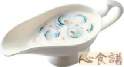 2.将鸡高汤、白酱放入锅中煮开后,拌入牛奶、黄瓜片与红辣椒末,以糖、盐、白胡椒粉调味即可。