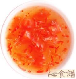 3、在煮好的糖水中调入柠檬汁、鱼露、白醋、红朝天椒圈、香葱花,搅拌均匀即可。