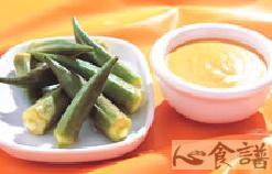 黄秋葵500公克,咖哩粉1大匙,固态优格150公克,蕃茄酱1大匙