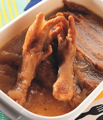 相关菜谱名称推荐:鸡脚冻,鸡脚冻,去骨鸡脚冻,眉豆花生煲鸡脚汤