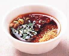 a.辣椒酱1大匙,淡色酱油3大匙,糖1大匙,黑醋1大匙,b.辣油1小匙,花生粉1大匙,葱花少许