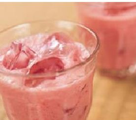 2.将作法1的草莓及其余材料一起放入果汁机中搅打约30秒即可。