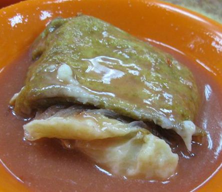 (4)将作好的内馅包入油豆腐皮中,以鱼浆封口,放入蒸锅,以大火蒸20分钟,食用时,淋上米酱或甜辣酱即可。