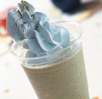 1. 抹茶拉堤粉、冰块与鲜奶一起放入冰砂机打匀。
