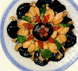 小煎鸡、西芹柠檬鸡、双冬辣鸡球。
