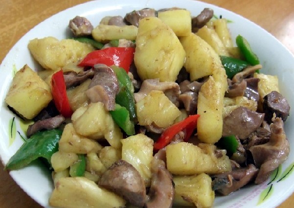 第一种:美食美味的菠萝鸡肾做法