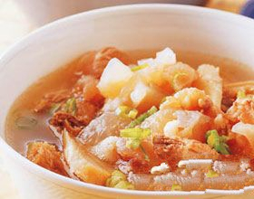 主料:海参150克,冬笋50克,牛蹄筋75克,鸡肉50克,