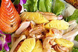 主料:鸭肉200克,菠萝300克,