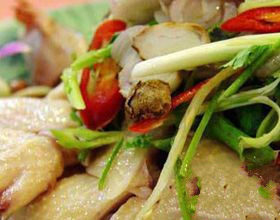 4.鸡熟后用碟将之盛起;