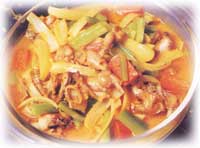 主料:田鸡12两,西芹,甘笋各少许,咖喱粉约1.5茶匙,辅料:洋葱1个,蒜肉,干葱各少许,调料:盐3/4茶匙,生抽1茶匙,淡奶约1/2杯