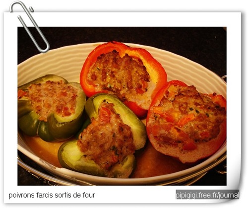 在旺火上烧至周身起皱后,去掉皮、蒂柄,沿蒂柄处削下作盖,去净籽。猪肉剁细,加蛋清豆粉、川盐、味精、姜葱汁拌匀,瓤入甜椒腹内,盖上盖,封口处抹上蛋清豆粉粘牢后,逐个摆放于蒸碗内,用皮纸封住碗口,上笼用旺火蒸约20分钟(肉馅熟)取出。去掉皮纸,入盘摆成梅花型(盖不用)。炒锅内加清汤、料酒、味精烧沸,用水豆粉勾清。