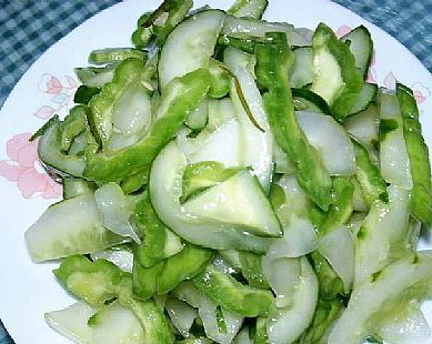 3、因苦瓜含有苦瓜素,味道很苦,凉拌时用水焯下会去除一部分苦味。