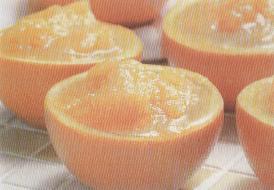 2、锅中放入糖、布丁粉及水煮化(边煮边搅拌),熄火后,倒入甜橙汁4杯拌匀,稍凉即可分装至半颗甜橙皮中,待冷却后放入冰箱冷藏,食用时取出切块装盘。