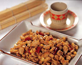 1.将羊里脊去外筋洗净,切成1.3厘米见方的小丁;