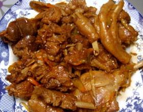 麻香口条、鲜马蹄糕、青椒土豆片、金钩瓜条、醋熘双色豆腐