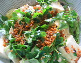 用料牡蛎肉200克,豆腐200克,白菜200克,植物油、葱、姜、精盐、胡椒面、味精各适量。
