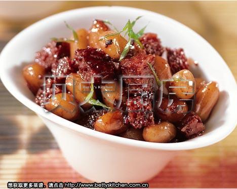 干烤麸100g,花生米50g,高汤150ml,五香粉3g,酱油2汤匙(30ml),白砂糖2茶匙(10g),红曲米60g,油1汤匙(15ml)