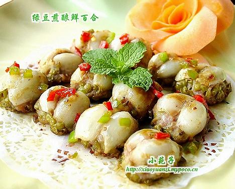 第三种:美食美味的鲜百合煎酿绿豆做法