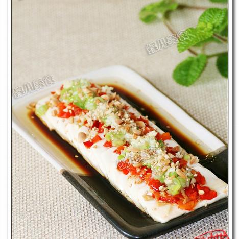 豆腐没有用盐水煮过,感觉有点老了.个人认为这道菜应该把豆腐用盐水煮过再加上点猪油单独蒸透,然后再浇上配料可能会不错.