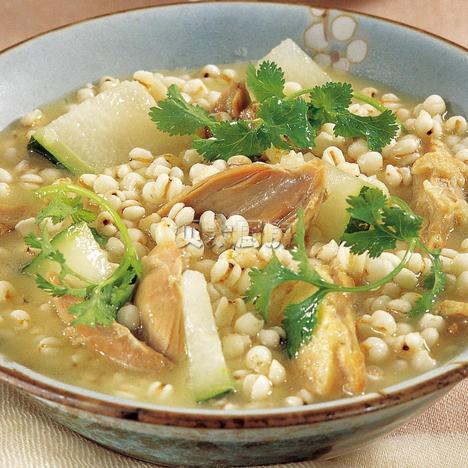 苡米40克,鸭肉800克,冬瓜800克,瘦猪肉100克,调料适量。