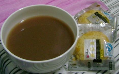 3、这时在一旁准备一个小碗,里面放好自己喜欢喝的糖,还有藕粉(藕粉先用温水冲开),然后用滚开的多味浆把它们冲开,很简单的一碗美味,多味幸福羹就做好了。不喜欢藕粉的也可以放点别的,如奶粉什么的都很好喝,也可以什么都不放,依然会很好喝。吃的时候再准备几块饼干或者面包,一份甜美的下午茶(也可以是简单的早餐)就这样诞生了。