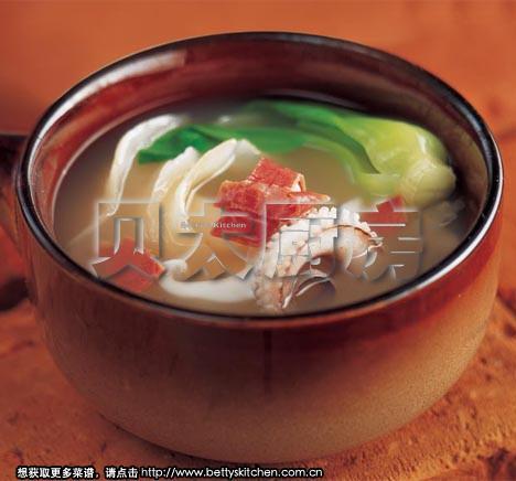 主料:墨鱼500克,天麻片15克,金华火腿30g,油菜100g,香葱1棵,老姜1块