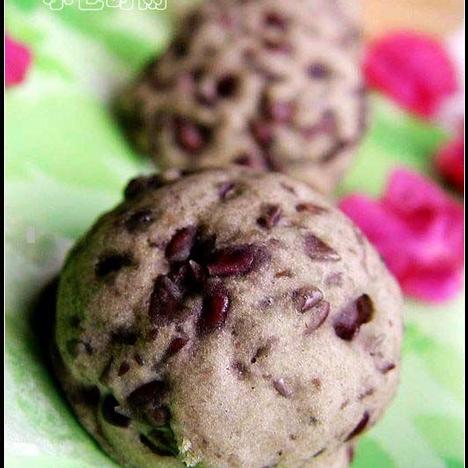 3.将做法二的面团分成每个20克,搓圆后压扁,再包入每个15克的搓圆红豆粒馅,再整成圆球形外观即可。