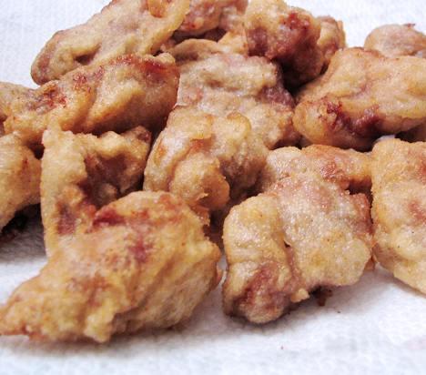 也可以根据鸡块大小来调整火的大小,适当的块中火就行,越大的块越不能用大火,否则外焦里生,反之,越小的块越要用大火,否则都炸干了。