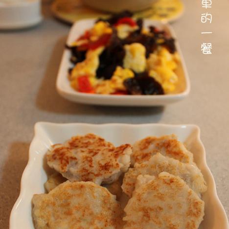 煎完山药饼,锅子里干干净净,偷个懒,没有刷,就直接做了炒蛋,真是高效~