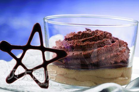 最后撒上黑巧克力粉做装饰,再放入冰箱冷藏2小时即可。