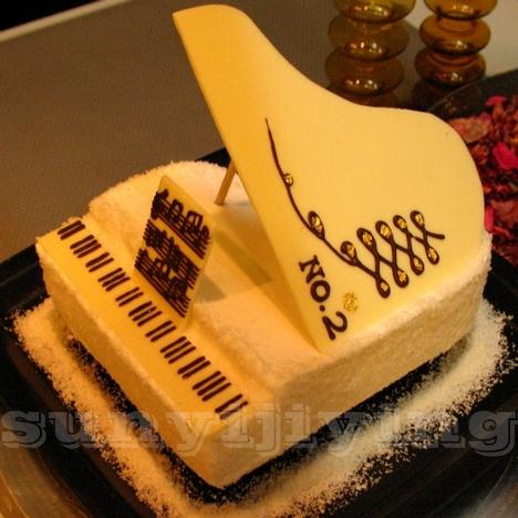 3、用油纸灌入融化的黑/白巧克力做成黑白巧克力笔在白巧克力上画出琴键的黑键、琴盖的装饰。