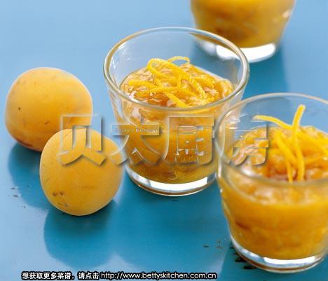 黄杏500g,白砂糖200g,橙子1只,蜂蜜80g