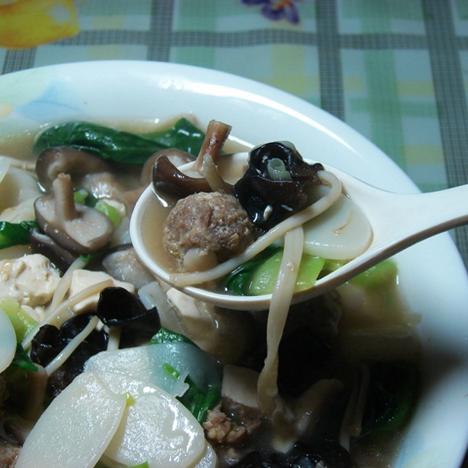 第五种:美食美味的小白菜粉丝汆丸子汤做法