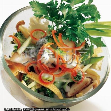 3、然后把煮好的雪汁淋在鲜蔬上即可。