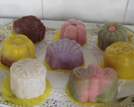 相关菜谱名称推荐:秀秀我的“七彩冰皮”,秀秀我的“七彩冰皮”,七彩冰皮月餅,自制简单七彩冰淇淋奶酪