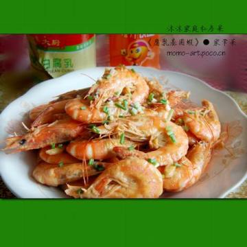 虾1斤,腐乳4小塊,料酒少許,植物油2湯匙,薑,蔥
