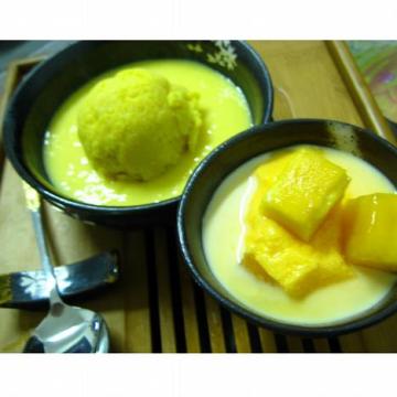 取二个量的芒果肉打成糊,加入少许的炼乳及纯牛奶(可根据自己的喜好适当增减)